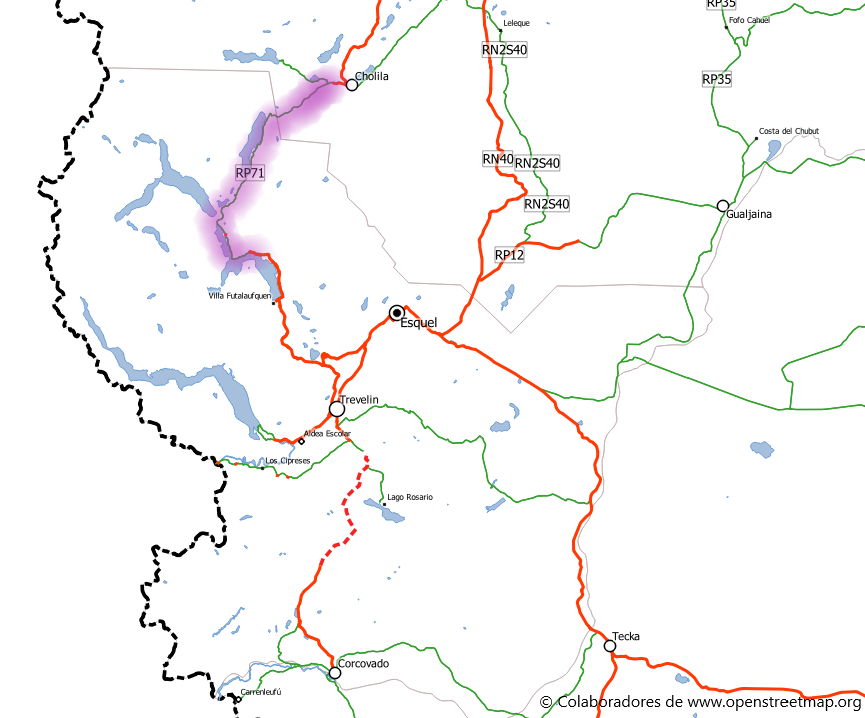 La ruta provincial 71 de Chubut corre paralela a la cordillera de los Andes, un poco más al oeste que la mítica RN40, desde Trevelin hasta Epuyén. El único tramo sin pavimentar es el que queda entre la portada Norte del Parque Nacional Lanín y la localidad de Cholila, atravesando el Parque Nacional Los Alerces y pasando junto a los lagos Futalaufquen, Verde y Rivadavia. Por su alto valor paisajístico ha sido propuesta incluso como reemplazo de la RN40 en ese tramo, sea por este motivo o para fomentar el turismo en la zona resulta imprescindible pavimentar este tramo