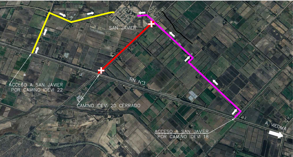 De acuerdo a un comunicado del gobierno rionegrino, avanza la pavimentación del camino 20 del IDEVI (Instituto Valle Inferior del Río Negro) entre la RN3 y el acceso a Fuerte San Javier. El plazo es de 7 meses, pero prevén terminar la pavimentación propiamente dicha antes de la veda invernal.