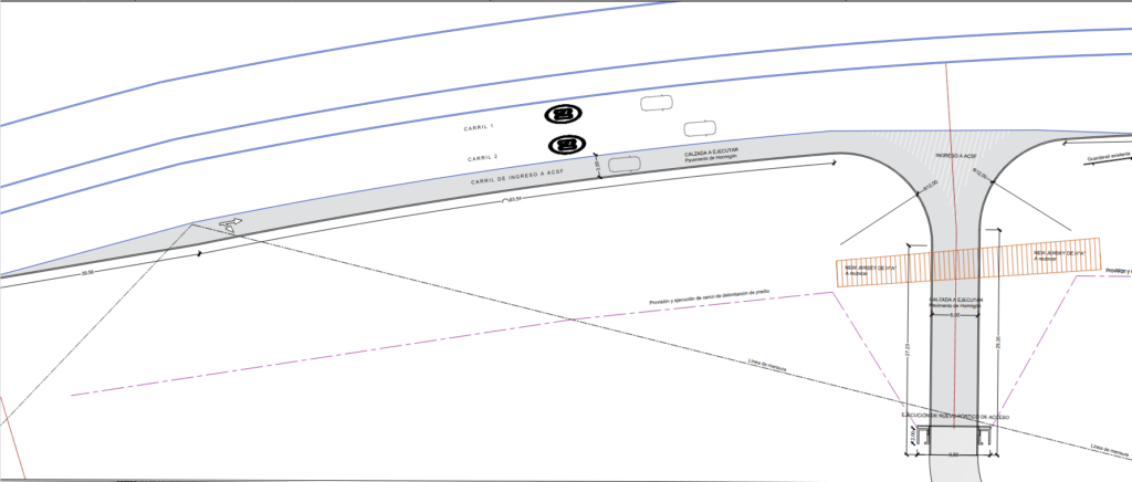 De esta manera, el proyecto vial contará con dos carriles vehiculares de ida, más dos carriles de vuelta, complementado con banquinas de servicios y carriles de incorporación en las salidas de las ramas de la avenida de Circunvalación. Esta doble vía se conecta directamente al sistema vial existente de cruce con