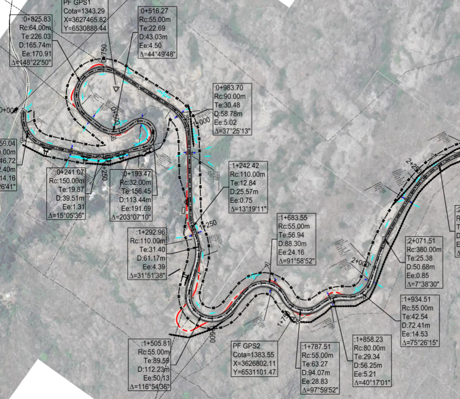 La traza presenta 3 tramos de carriles adicionales, con el fin de permitir maniobras de adelantamiento de vehículos. Todos estos carriles están sobre la mano con sentido Este Oeste, debido a que en esta dirección la pendiente longitudinal es predominantemente ascendente y afecta a la velocidad de marcha de los vehículos. Los carriles tienen un ancho de 3.65 m, con un abocinamiento de la entrada de 50m y de 110m para la salida.