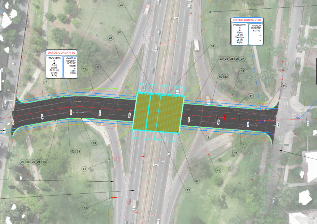 Los pasos de calles que van por debajo de los puentes de la calzada principal tendrán 4 carriles de 3.65 m cada uno sin separación central, cordones cuneta de 55 cm y veredas de 3.7 m a cada ladocuales consisten en 2 calzadas de 2 carriles cada una con una divisoria central. Además, contarán con banquinas externas de 3 m en ambos sentidospuentes contarán con espacio para peatones y bicisenda. Por otra parte, se replantea el cruce de Soldado Desconocido para que sea únicamente para ciclistas y peatones. Los ramales actuales de ingreso y egreso se eliminan para construir nuevos que se vinculan con las colectoras y cruces más alejados de la calzada principal.