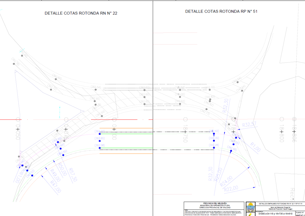 La vinculación con la rotonda de RN22 (rotonda «Pluspetrol») casi no sufre modificaciones, la rama que llega con sentido ascendente a la hoy calzada única se ve apenas corregida unos metros antes para empalmar con la nueva calzada. La rotonda con RP51 tiene un desplazamiento un poco mayor respecto a la rama actual.