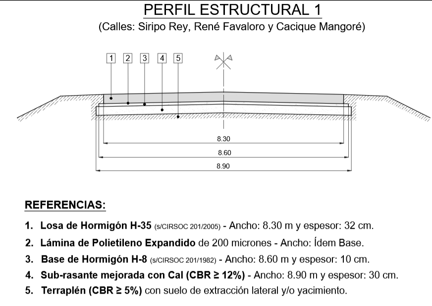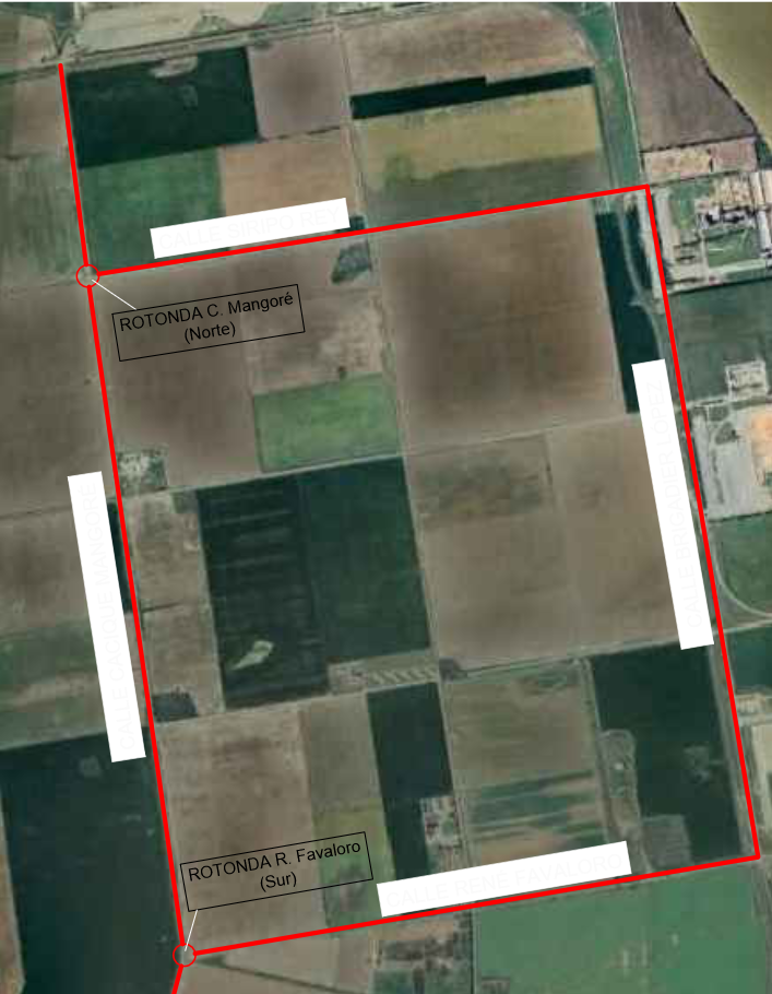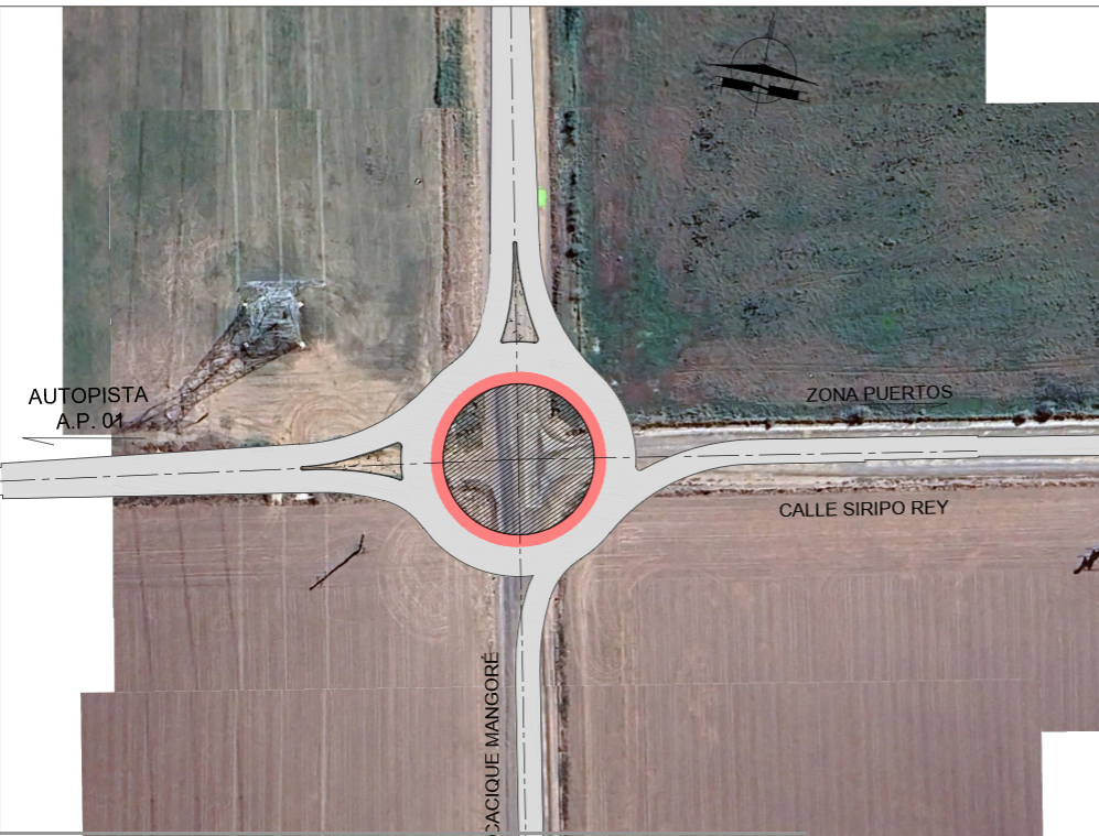 Pavimentación de varios tramos de las calles Cacique Mangoré, Brigadier López, René Favaloro y Siripo Rey en zona rural cercana a 4 terminales portuarias del norte de Timbúes. Incuye dos rotondas en los cruces de Mangoré con Rey y Mangoré con Favaloro.