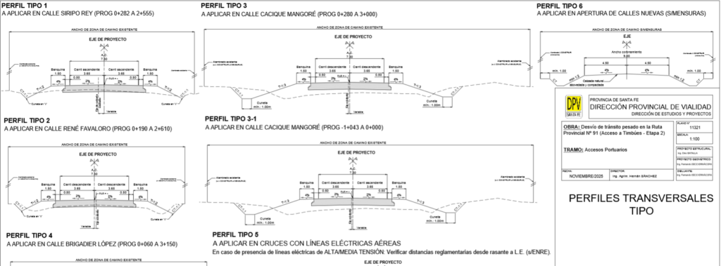 - Desvío etapa 2: pavimentación de 4 caminos en la zona rural del norte de Timbúes, que permiten el acceso a cuatro complejos portuarios. Se vincula con la apertura de traza de la etapa 1.