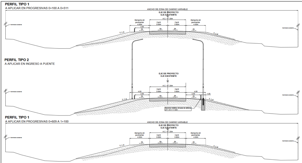 El motivo fundamental es el ancho insuficiente de los puentes actuales, que tienen solo 6 m. Se los reemplazará por puentes de 13.3 m, con una calzada de 7.3 m y dos banquinas de 3 m a cada lado. A esto se suman cordones laterales de hormigón armado de 65 cm, los cuales contarán con barandas para defensa peatonal.