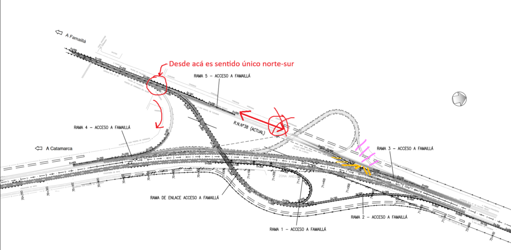 - Ingresar desde Tucumán por RN38 a Famaillá por RN38: hoy es una continuidad donde la calzada dividida pasar a ser única. Con la nueva configuración uno se abre de la autopista para incorporarse a la calzada actual que tiene sentido único hasta encontrar el retorno, punto en que ahora sí pasa a ser de doble sentido de circulación.