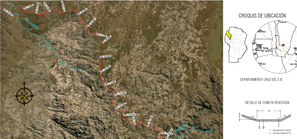 Pavimentación de la ruta provincial 28 de Córdoa entre el río Guasta y un punto ubicado 1 kilómetro antes del puente sobre el río Yuspe.