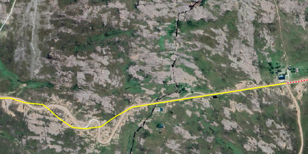 En los primeros 2800 metros se procura mantener en la medida de lo posible las condiciones actuales del camino existente, con solo algunas pequeñas modificaciones en la traza para adaptar las curvas a la velocidad de diseño. En el segundo tramo se presenta una apertura nueva de camino. Esto involucra una afectación en la zona de camino, la necesidad de elementos de drenaje a construir y la demarcación y señalización de todo el tramo.