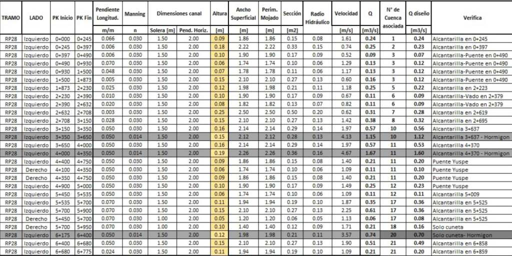 Con respecto a los períodos de recurrencia, se han adoptado 10 y 25 años para diseño de cunetas y alcantarillas respectivamente, en tanto que se ha definido 100 años como recurrencia para la verificación de la función básica de la obra.